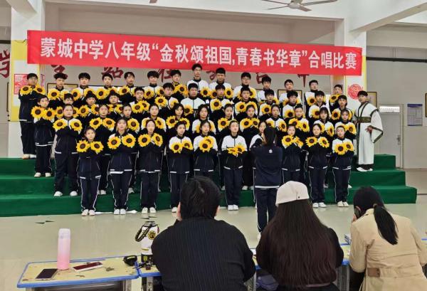 為豐富校園文化生活,厚植愛國(guó)主義情懷,賡續(xù)紅色血脈,在學(xué)校黨總支的統(tǒng)籌引導(dǎo)下,10月16日下午,蒙城中學(xué)八年級(jí)合唱比賽在和暢樓盛大啟幕。學(xué)校黨總支始終將紅色教育作為立德樹人的重要抓手,此次合唱比賽正是黨總支引領(lǐng)下,深化學(xué)生思想教育、傳承紅色基因的生動(dòng)實(shí)踐。同學(xué)們用最嘹亮的歌聲,最飽滿的熱情,獻(xiàn)禮偉大祖國(guó),唱響了新時(shí)代學(xué)子們的錚錚誓言!