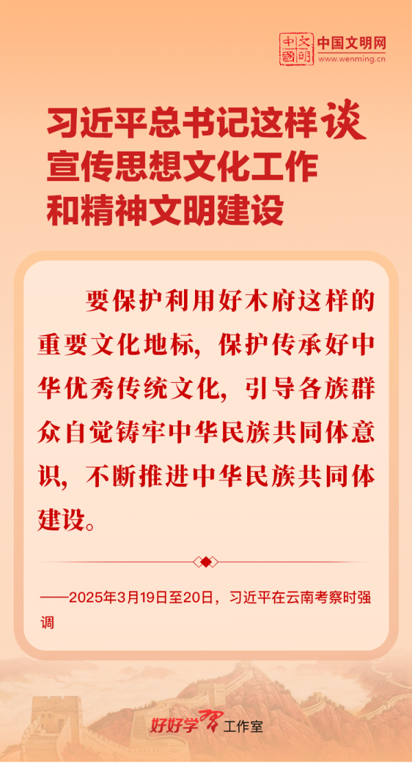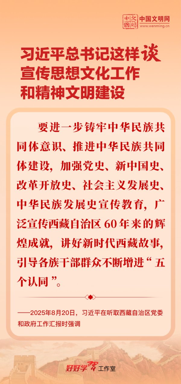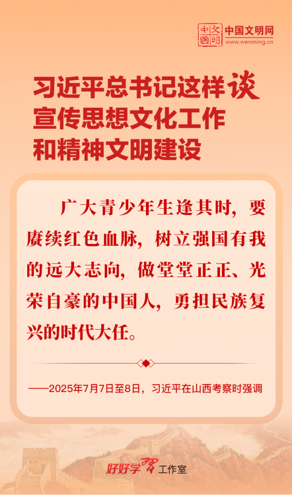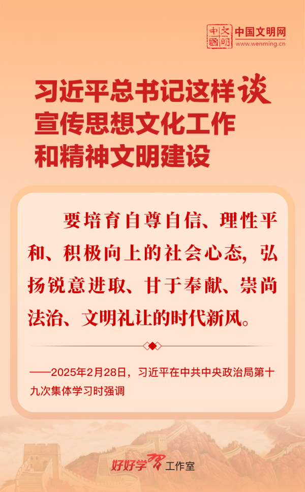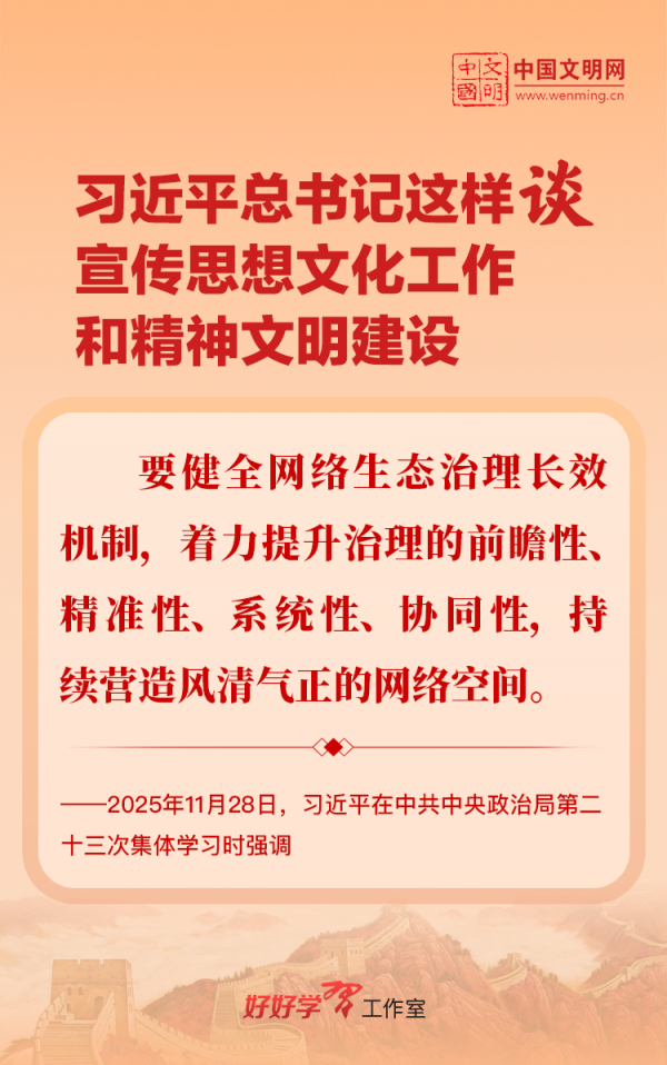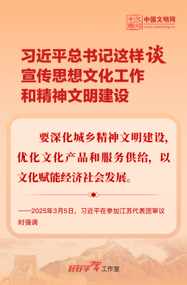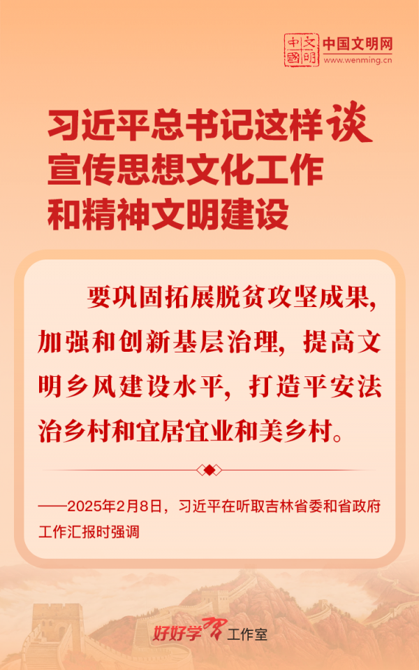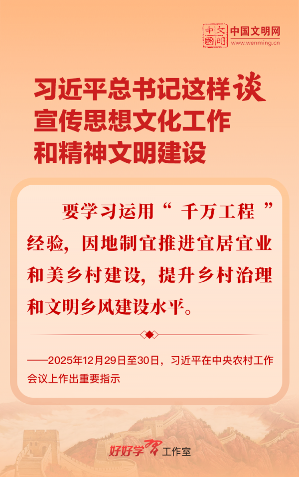 習(xí)近平總書記高度重視宣傳思想文化工作和精神文明建設(shè),念茲在茲、飽含期許。2025年,習(xí)近平總書記對宣傳思想文化工作和精神文明建設(shè)作出一系列新的重要指示,發(fā)表一系列重要論述。本網(wǎng)從這一年的頭條報道中輯錄部分內(nèi)容,讓我們一起深入學(xué)習(xí)領(lǐng)會,更加自覺學(xué)習(xí)貫徹習(xí)近平文化思想,更好擔(dān)負起新時代的文化使命。