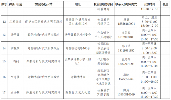 蒙城縣將充分發(fā)揮各鄉(xiāng)鎮(zhèn)(街道)新時代文明實踐所、村(社區(qū))新時代文明實踐站的陣地作用,精準(zhǔn)對接中小學(xué)生的需求,通過招募志愿者,以托管看護(hù)為主,結(jié)合資源特色,為廣大中小學(xué)生免費提供紅色文化、橙色安全、藍(lán)色科普、綠色生態(tài)、紫色文藝教育為主要內(nèi)容的“五彩假日”托管服務(wù),加強(qiáng)中小學(xué)生思想道德建設(shè)和科學(xué)文化素質(zhì)教育。