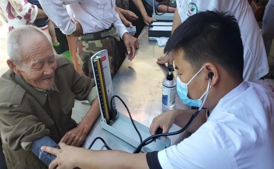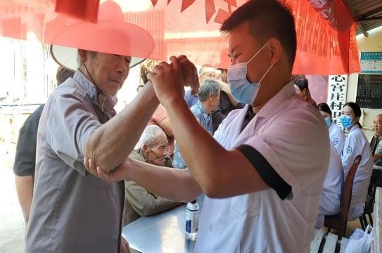 活動(dòng)現(xiàn)場(chǎng),前來咨詢的人絡(luò)繹不絕。醫(yī)院神經(jīng)內(nèi)科、普外科、疼痛科、呼吸科及彩超室等科室醫(yī)護(hù)人員免費(fèi)給群眾測(cè)量血壓、血糖等檢查,提供合理化的建議,耐心為每一位村民答疑解惑,向他們發(fā)放多種宣傳手冊(cè)和彩頁,為他們講解“三減三健”核心知識(shí)以及中國公民健康素養(yǎng)、老年人如何運(yùn)動(dòng)飲食等相關(guān)知識(shí)。