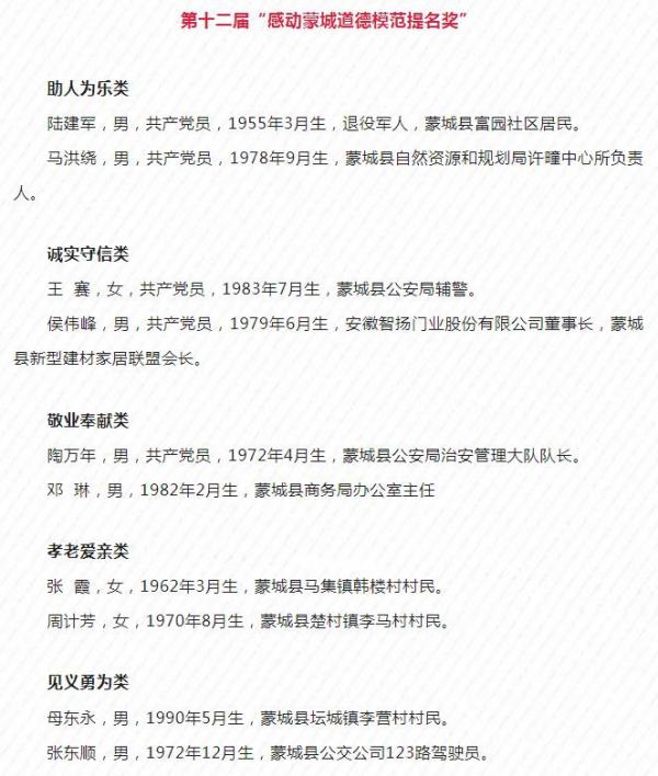 活動(dòng)表彰了第十二屆感動(dòng)蒙城道德模范、第十二屆感動(dòng)蒙城道德模范提名獎(jiǎng)。