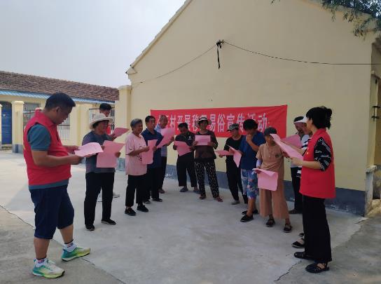 活動中,黨員干部通過集中宣講、入戶走訪的方式對群眾進行宣傳,并發(fā)放《移風易俗一封信》、張貼紅白喜事“十提倡”等,引導大家“喜事新辦、喪事簡辦、陋習禁辦”,大力打擊黃賭毒俗,反對“鋪張浪費、攀比炫富、封建迷信、黃賭毒俗”等陋習。