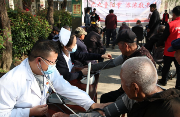 活動中,來自中醫(yī)院的醫(yī)護(hù)志愿者們帶來了醫(yī)療設(shè)備,為老人們提供義診及健康咨詢,免費(fèi)為他們檢查血壓、血糖情況,進(jìn)行疾病診斷,并提供相應(yīng)的診療方案,有針對性地進(jìn)行合理用藥指導(dǎo)及健康宣教。