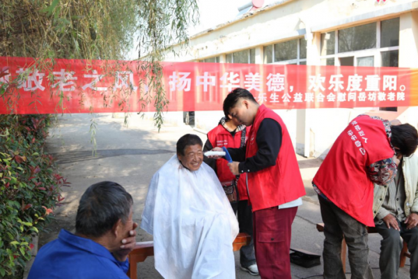 老人們在現(xiàn)場排隊(duì)理發(fā),志愿者們用嫻熟的技術(shù)和熱情的服務(wù)為老人們理發(fā)。